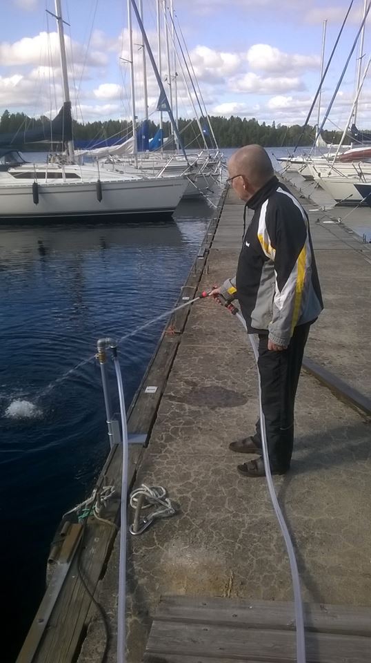 Pohjoissatamassa olevien veneiden tarpeisiin on hankittu uppopumppu. Pumppu on siirrettävissä laiturilta toiseen kohteen mukaan. Laiturissa kelluvia veneitä voidaan pestä laskemalla pumppu laiturin kyljessä olevan puuparrun varaan ja ottamalla sähkö laiturin juuressa olevalta laiturisähköpylväältä. Pumppuun on liitetty 25m halkaisijaltaan 19mm:n muoviletkua jonka päässä on Gardenan järjestelmän mukainen pikaliitin ja pistooli. Jos letkusta otetaan vettä painepesuriin on jokaisen hankittava adapteri ja letkunpätkä oman painepesurin vaatiman mitoituksen mukaan. Gardenan osia saa mm. K-Rauta Lielahdesta.