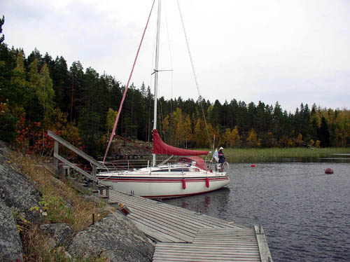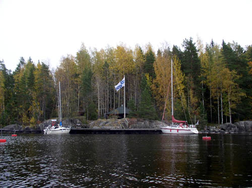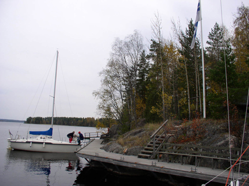 Antinkiven, ent. Ratsukarin, jälkeen käännät keulan 90° itään. Edessäsi näkyy rivi suuria poijuja, jotka pitävät paikallaan isommankin veneen. Laituri penkkeineen kiertää kallionreunaa, jonka päällä seisovassa kyltissä lukee Kipparinmaa. Tullessasi ylävesistä voit kääntää keulan kohti Kipparinmaan lipputankoa jo heti ”N-sata” -länsiviitan jälkeen, jolloin karikko jää vasemmalle.